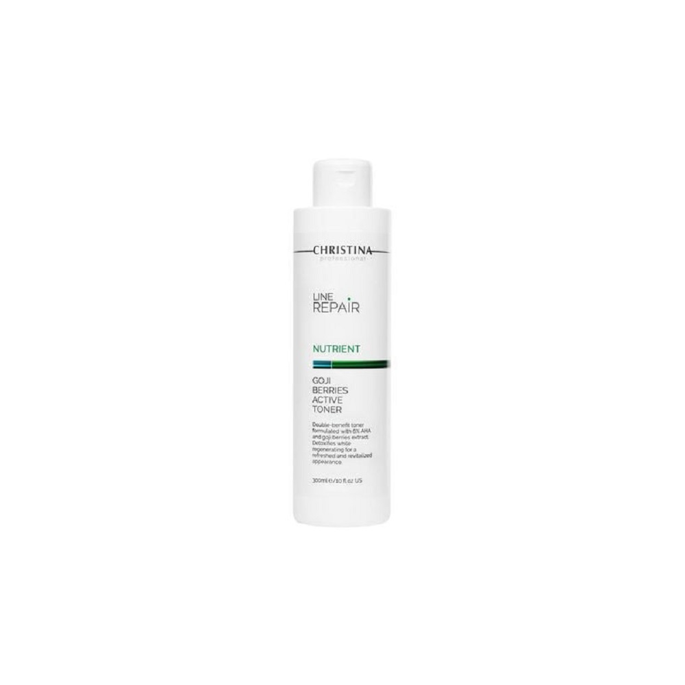 Активний тонік Ягоди годжі Christina відлущує відмерлі клітини і виводить токсини. Гліколева та яблучна кислоти з рослинних екстрактів мають відлущувальну дію, прискорюють регенерацію, покращують кровообіг та метаболізм у шкірі.